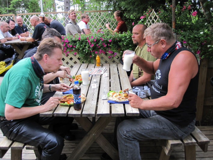 Liikkeelle saatiin 15 hengen voimalla 13 pyöräkuntaa.  Keli oli pitkään aikaan mitä hienoin.  Uusia jäseniä kerhoon tuli 4 ja lisäksi 2 hangaroundjäsentä.  Illan aikana 10 henkilöä söi 11 pihviä, mikä lienee yhden illan ennätys.