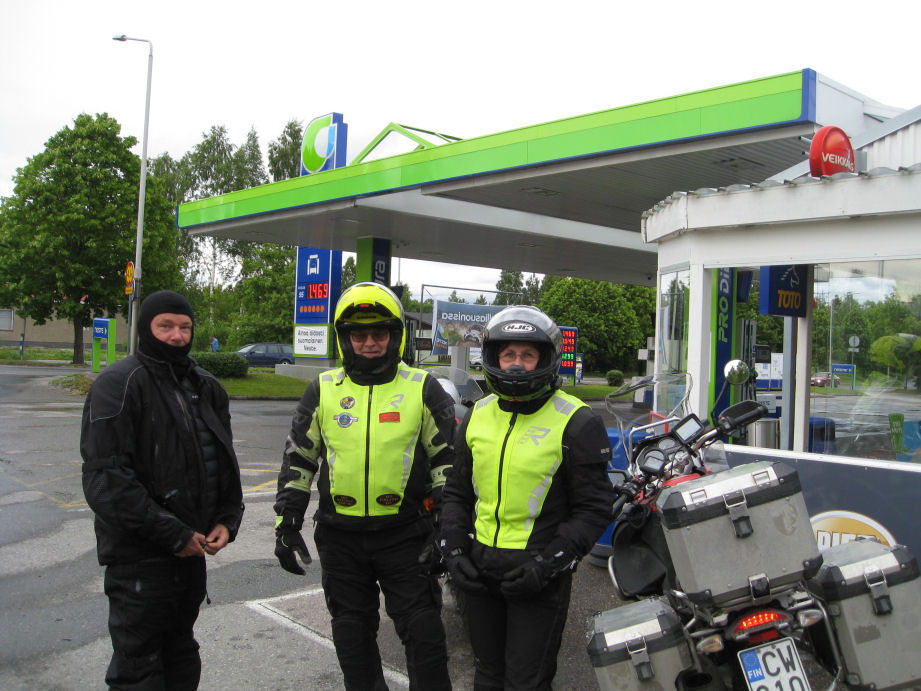 Harmaan pilvisenä iltana tutulle lähtöpaikalle kokoontui kolme motoristia, joista yksi oli saanut viehättävän kyytiläisen mukaansa. Matka taittui pääasiassa kuivia asfalttiteitä. Sääennusteista huolimatta kypärien visiiritkin pysyivät kuivina.