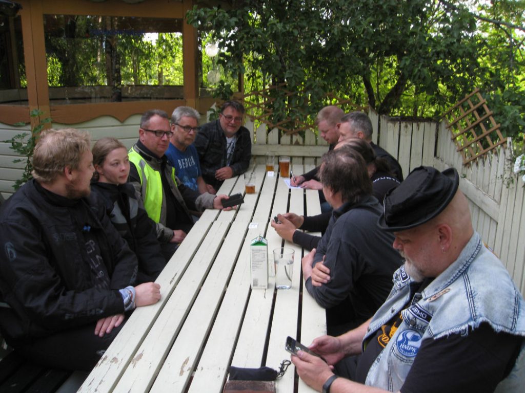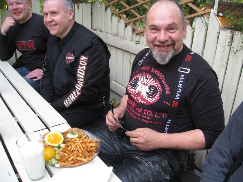 Nälkäinen biker-kuusikko starttasi Toijalasta kohti KK-ravintolaa. Matka taittui upeita maisemateitä auringonpaisteessa kurvaillen. Perillä seuruetta odotti Messinkimasu tilauksensa jo tehneenä ja läntinen tiimi, missä mukana oli kyytiläisenä saapunut Peltipötsin tytär.