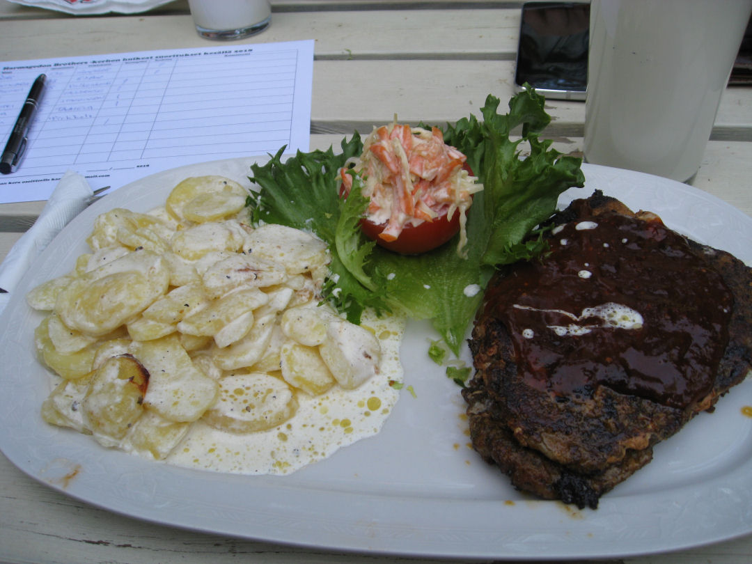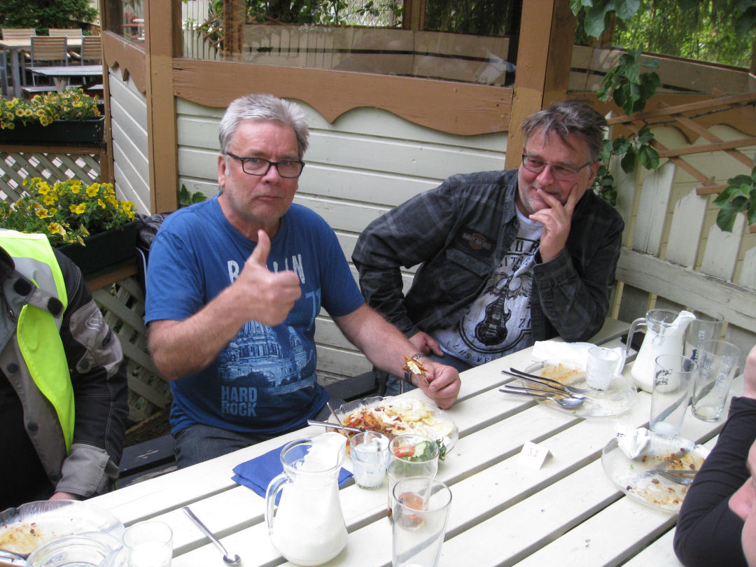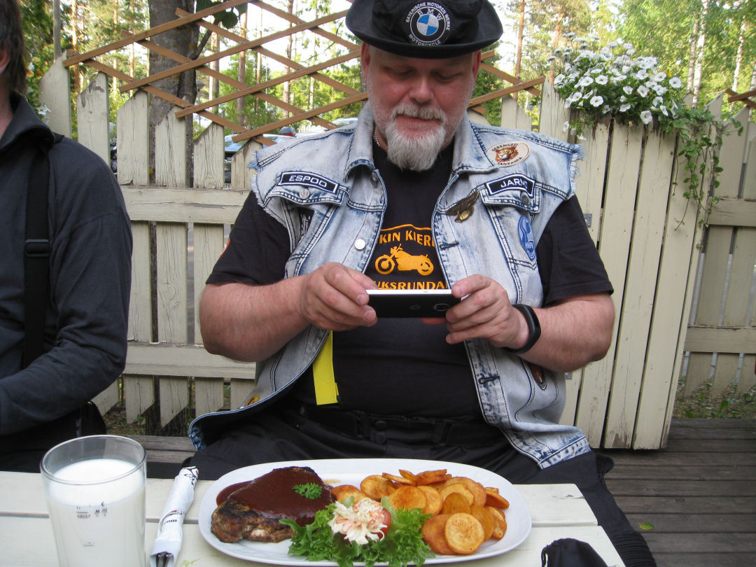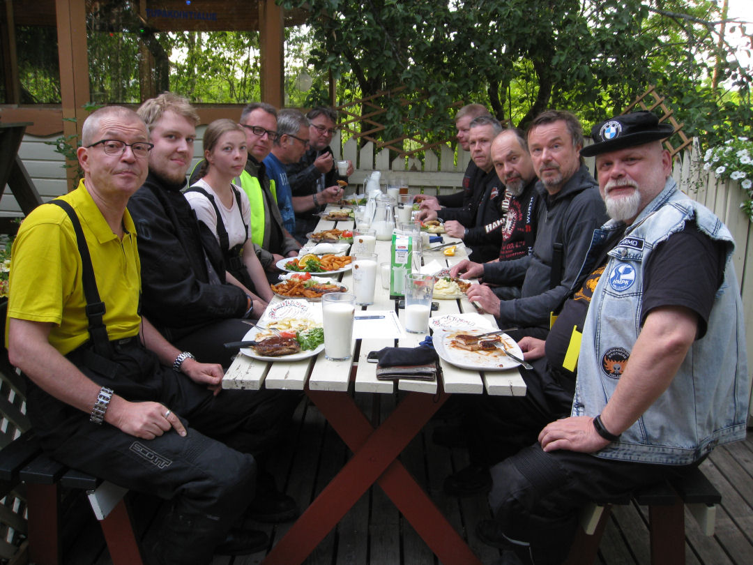 Nälkäinen biker-kuusikko starttasi Toijalasta kohti KK-ravintolaa. Matka taittui upeita maisemateitä auringonpaisteessa kurvaillen. Perillä seuruetta odotti Messinkimasu tilauksensa jo tehneenä ja läntinen tiimi, missä mukana oli kyytiläisenä saapunut Peltipötsin tytär.