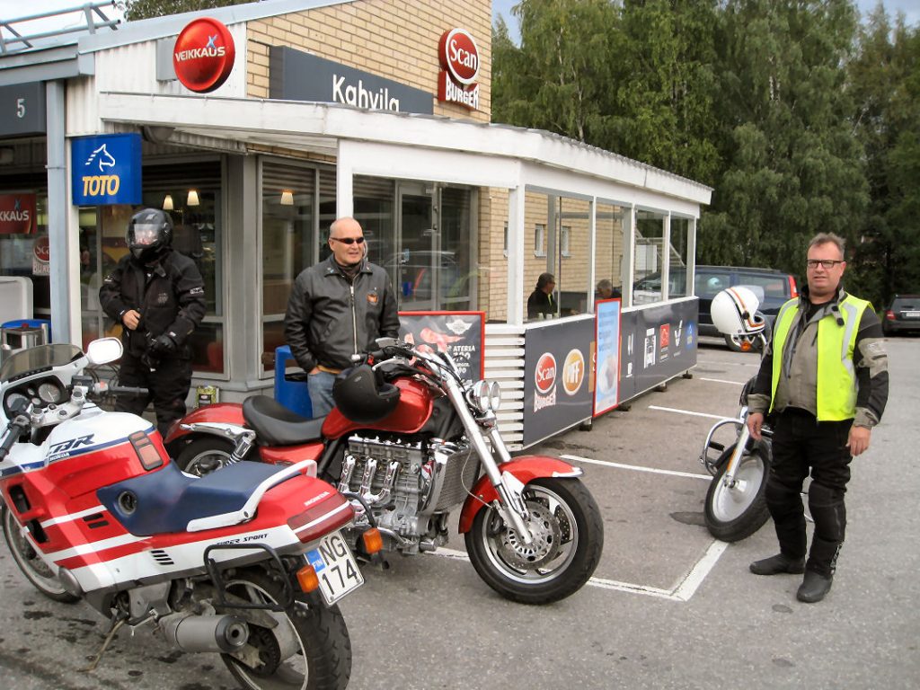 Pilvipoutaisessa säässä kokoontui lähtöpaikalle neljä motoristia yhden startatessa matkaan kaukaiselta etelärannikolta. Kerhossamme esiintyy myös jonkinlaista myöhäisherännäisyyttä, mutta siitä selviytyy ajamalla omia ajojaan pääjoukon jäljessä. Letkaa veti parikymmentä kilometriä sokerinen jäsen vilpoisissa farkuissaan. Hän luovutti vetovastuun jäsennumeroltaan seuraavalle motoristille kurvaten itse pirtin lämpöön iltaa viettämään. Seurue sai muutamasta sadepilvestä pikkuiset ripsaukset, mutta suurimman osan matkasta mutkaiset asfalttitiet olivat mukavan kuivia kruisailla. Heinäkuun ajon seurauksena Peltipötsi oli saanut entisen tyttöystävänsä mustan amerikkalaisen käyttöönsä kahden ehdon taktiikalla: kuski ja mopo ehjinä kotiin!