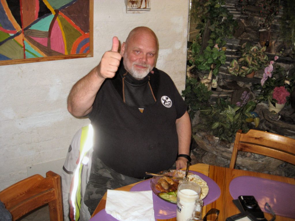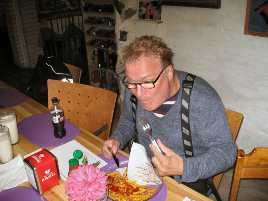 Perillä Messinkimasu oli jo vallannut pitkän pöydän ja tilannut porukan hämmästykseksi vain Harmagedon-annoksen. Samanlainen lautasellinen tuotiin myös Inssille, Peltipötsi olikin tämän kerran ainoa Krakataun suorittaja. Kaksi muuta ruokailijaa tilasi eväät lasten ruokalistalta.