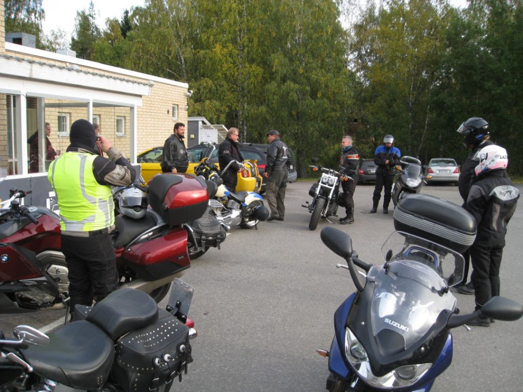 Upeassa pilvipoutaisessa säässä kokoontui yhdeksän moottoripyöräilijää sekä yksi kyytiläinen Toijalan lähtöpaikalle. Mukaan oli uskaltautunut myös ensimmäistä kertaa tänä kesänä roadcaptain Veijo keltaisella nelipyöräisellä villioriillaan. Hän lähti vetämään letkaa ruskan kellastamien puiden varjostamia teitä. Mutkatiet päätettiin valita kesän viimeisen ajokerran kunniaksi todelliselta maisemareitiltä: seurueemme jyristeli Teuron vanhan kylätien ja -miljöön kautta ”ikiaikaiselle” Hämeen Härkätielle.