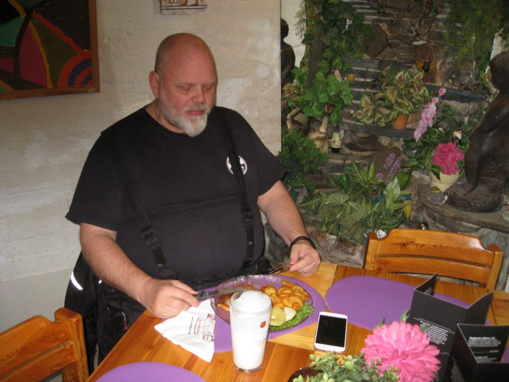 Seurueen päästyä Keppanan parkkipaikalle, oli Messinkimasu jo heitä vastaanottamassa. Tilauksia tehtäessä kuulimme ravintolan henkilökunnalta pahoittelut valitettavan kömmähdyksen vuoksi: maito- ja piimätilaus oli unohtunut päivän ”todo-listalta”! Muutamille ensin ehtineille riitti navetan tuotteita, mutta monen kerholaisen oli käytävä limonadikaapilla. Peltipötsin tytär ja vävykokelas olivat antaneet luvan kertoa ilouutisen läsnäoleville kerholaisille: hänestä tulee ensi keväänä neljännen kerran vaari -tosin heidän toimestaan ensimmäistä kertaa! Nuoripari sai raikuvat aplodit ja onnittelut perheenlisäyksen johdosta.