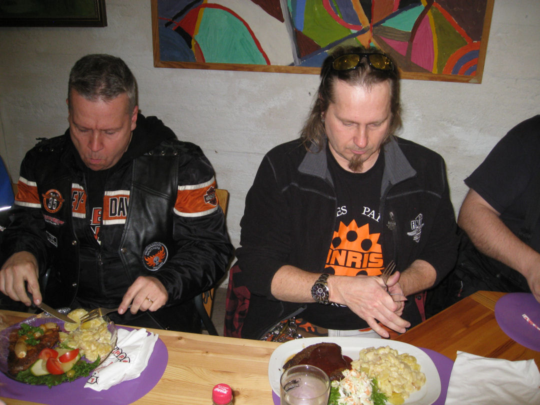 Seurueen päästyä Keppanan parkkipaikalle, oli Messinkimasu jo heitä vastaanottamassa. Tilauksia tehtäessä kuulimme ravintolan henkilökunnalta pahoittelut valitettavan kömmähdyksen vuoksi: maito- ja piimätilaus oli unohtunut päivän ”todo-listalta”! Muutamille ensin ehtineille riitti navetan tuotteita, mutta monen kerholaisen oli käytävä limonadikaapilla. Peltipötsin tytär ja vävykokelas olivat antaneet luvan kertoa ilouutisen läsnäoleville kerholaisille: hänestä tulee ensi keväänä neljännen kerran vaari -tosin heidän toimestaan ensimmäistä kertaa! Nuoripari sai raikuvat aplodit ja onnittelut perheenlisäyksen johdosta.