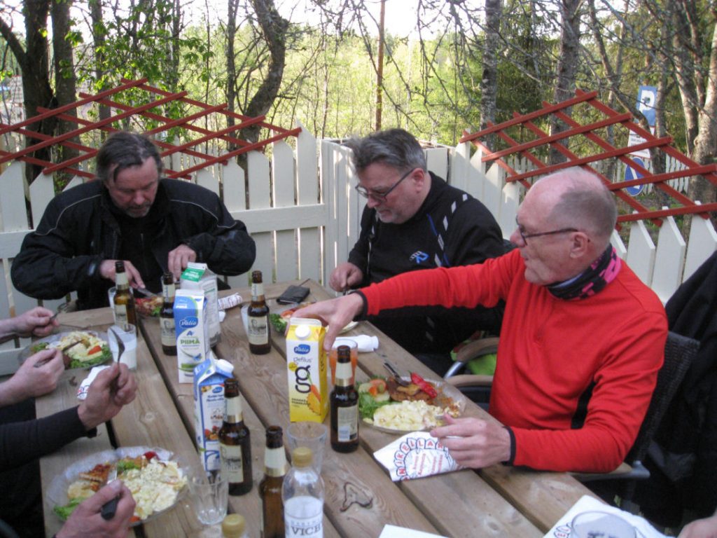 Ravintolan henkilökunta oli ylitsevuotavan ystävällistä ja saimme sydämelliset tervetulotoivotukset seuraavalle ajokerralle. Seurue hajaantui, joskin pääjoukko ajeli urheiluopiston reittiä kohti auringonlaskua seuraavat pihviajot mielessään.