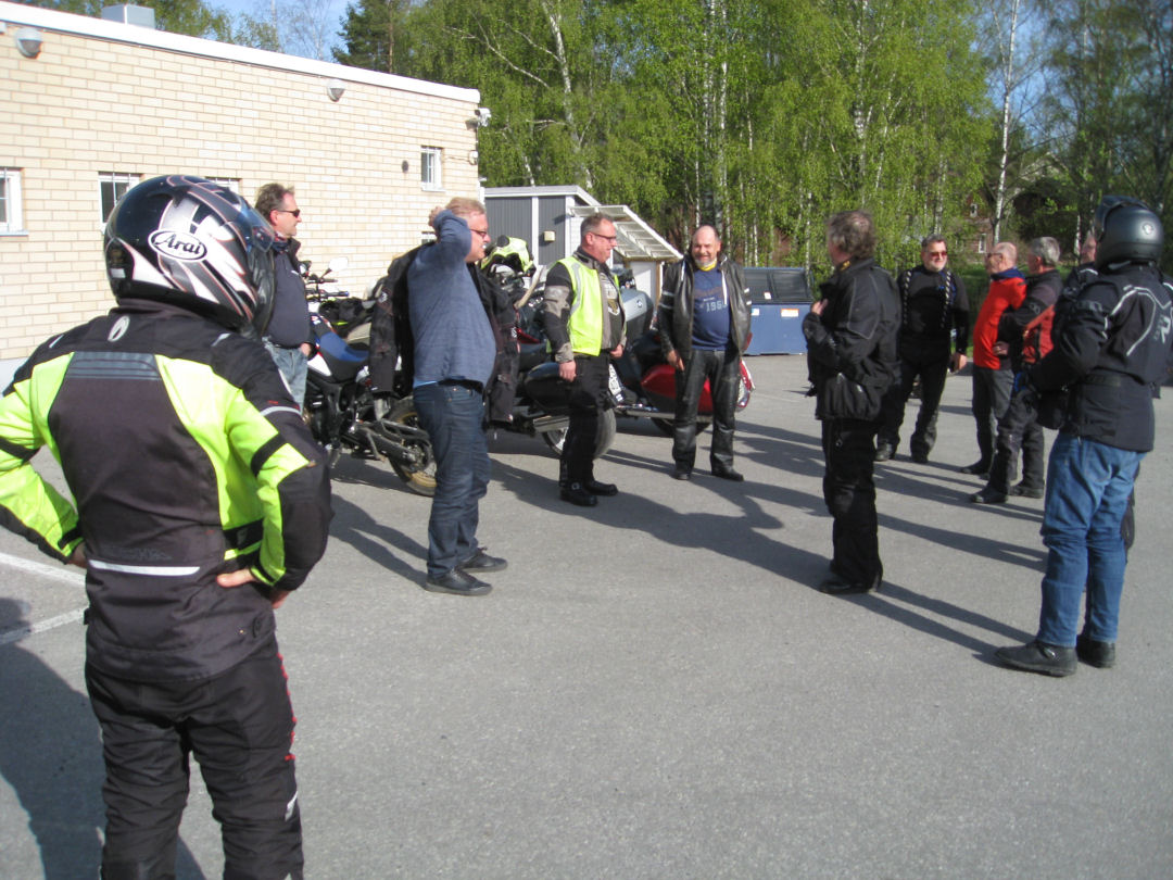 Kerhon uusi road captain Peltipötsi johdatteli upean letkan useimmiten ajettua reittiä kohti määränpäätä. Tutulle parkkipaikalle oli seuruetta vastassa muutamia omia reittejään saapunutta pihvinpurijaa, Messinkimasun kasvoilta oli mukavaa huomata todellisen jälleen näkemisen ilme!