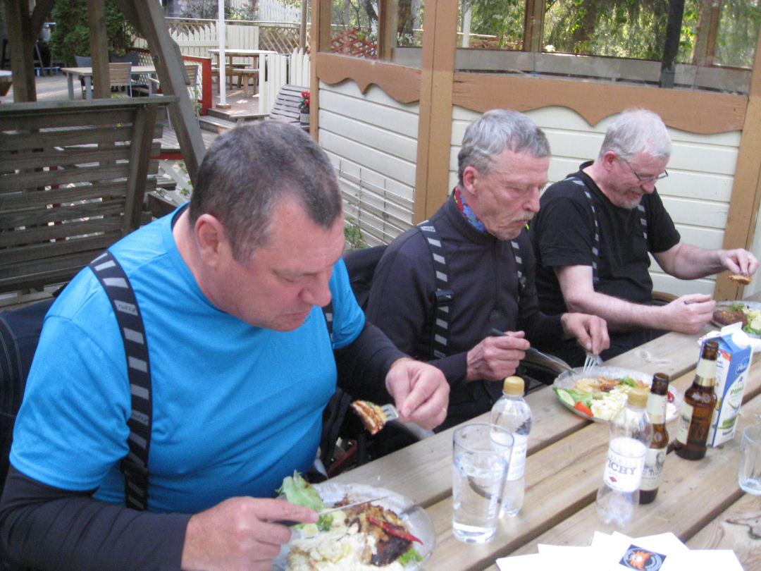 Ravintolan henkilökunta oli ylitsevuotavan ystävällistä ja saimme sydämelliset tervetulotoivotukset seuraavalle ajokerralle. Seurue hajaantui, joskin pääjoukko ajeli urheiluopiston reittiä kohti auringonlaskua seuraavat pihviajot mielessään.