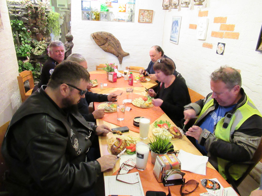 Aurinkoisena ja mukavan lämpimänä alkukesän iltana kokoontui Toijalassa seitsemän motoristia sekä yksi kyytiläinen. Messinkimasu teki tällä kertaa yllätyksen kurvatessaan pohjoisen retkikunnan mukaan uuden uutukaisella kolmipyöräisellään. Peltipötsi johdatteli letkan historiallista maisemareittiä Hämeen härkätietä kohti ravitsemusliikettä.