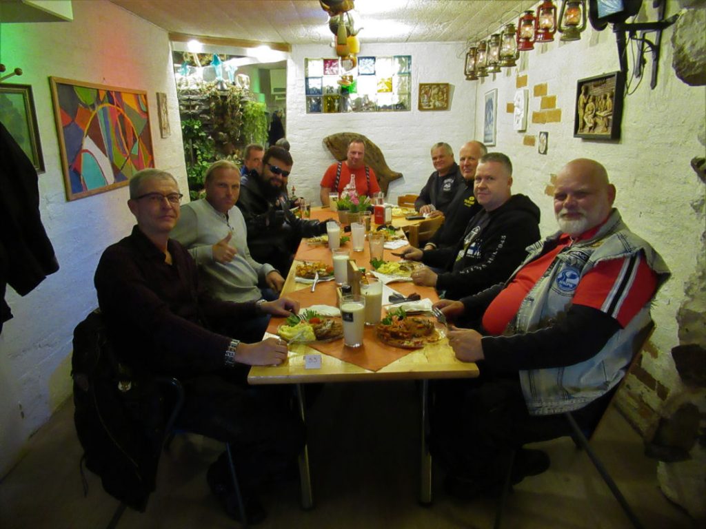 Kahdeksan motoristia, joukossa yksi ensikertalainen, kokoontui Toijalan legendaariselle lähtöpaikalle. Upeassa, hieman syksyä enteilevässä, mutta kuitenkin aurinkoisessa säässä saimme ajella kohti päivällispöytää. Peltipötsi veti letkan perinteisintä reittiä ja ryhmän saapuessa ravintolalle Messinkimasu ajoi pihaan yhtä aikaa eteläisen ryhmän ainoana motoristina.