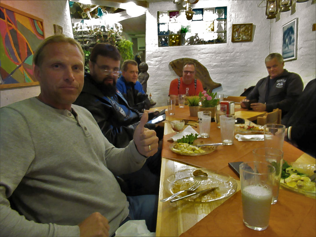 Kahdeksan motoristia, joukossa yksi ensikertalainen, kokoontui Toijalan legendaariselle lähtöpaikalle. Upeassa, hieman syksyä enteilevässä, mutta kuitenkin aurinkoisessa säässä saimme ajella kohti päivällispöytää. Peltipötsi veti letkan perinteisintä reittiä ja ryhmän saapuessa ravintolalle Messinkimasu ajoi pihaan yhtä aikaa eteläisen ryhmän ainoana motoristina.