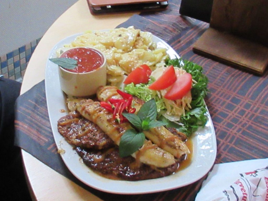 Pilvet vain uhkasivat pohjoisen suunnalla, mutta eteläisen osaston edustaja sai kokea useammankin sateen ripsauksen. Annoksia tilatessa tulikin henkilökunnalta tieto, että vain yksi Krakatau-pihvi on valmiina odottamassa, lyhyen neuvottelun ravintolan henkilökunnan kanssa kaksikko päätyi tupla-Harmasta Krakatau-soosilla höystettyyn versioon toiselle ruokailijalle. Pikainen puhelu Australiaan ja kaksikko sai hyväksynnän myös tällaiselle Krakatau-viritelmälle.