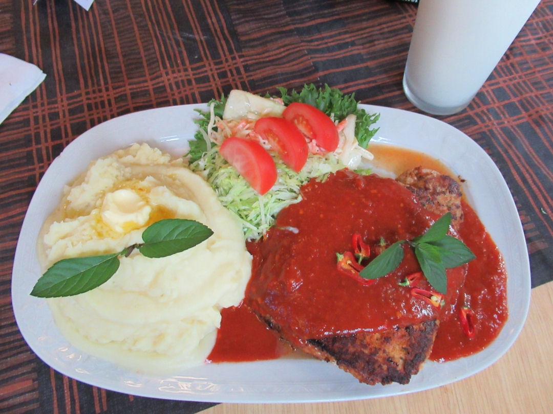 Pilvet vain uhkasivat pohjoisen suunnalla, mutta eteläisen osaston edustaja sai kokea useammankin sateen ripsauksen. Annoksia tilatessa tulikin henkilökunnalta tieto, että vain yksi Krakatau-pihvi on valmiina odottamassa, lyhyen neuvottelun ravintolan henkilökunnan kanssa kaksikko päätyi tupla-Harmasta Krakatau-soosilla höystettyyn versioon toiselle ruokailijalle. Pikainen puhelu Australiaan ja kaksikko sai hyväksynnän myös tällaiselle Krakatau-viritelmälle.