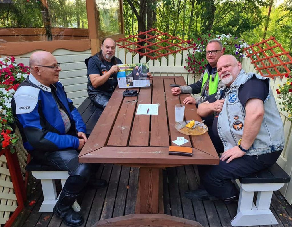 Mukana olivat Inssi, kerhomerkkivastaava Seppo, 11 vuoden tauon jälkeen ajolle lähtenyt jäsen nro 79 Jukka, sekä poikkeuksellisesti Road Captainina toiminut