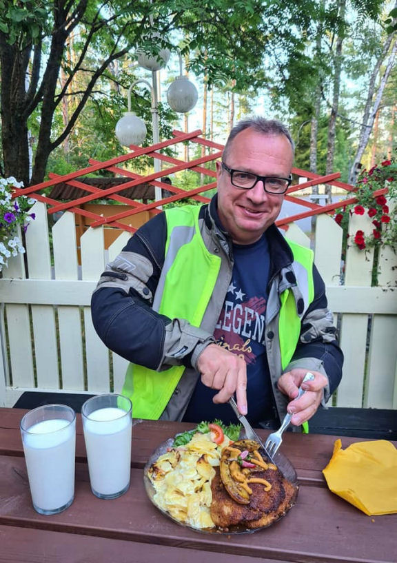 on vajaassa 3 vuodessa keventänyt itseään -95 kiloa. Jälkkäriksi osa nautti kahvia ja osa jäätelöä ja paluumatkalle henkilökuntaa kiitettyämme loistavasta palvelusta startattiin noin 20:25 todella upeaan iltaan. Messinki lähti etelään ja pohjoiseen lähtenyt nelikkomme kruisaili Inssin toiveesta Eerikkilän urheiluopiston kautta mikä olikin hyvä reitti. Jäsen 152 tahtoo vielä erikseen kiittää tästä osakseen saamasta hienosta ja ikimuistettavasta